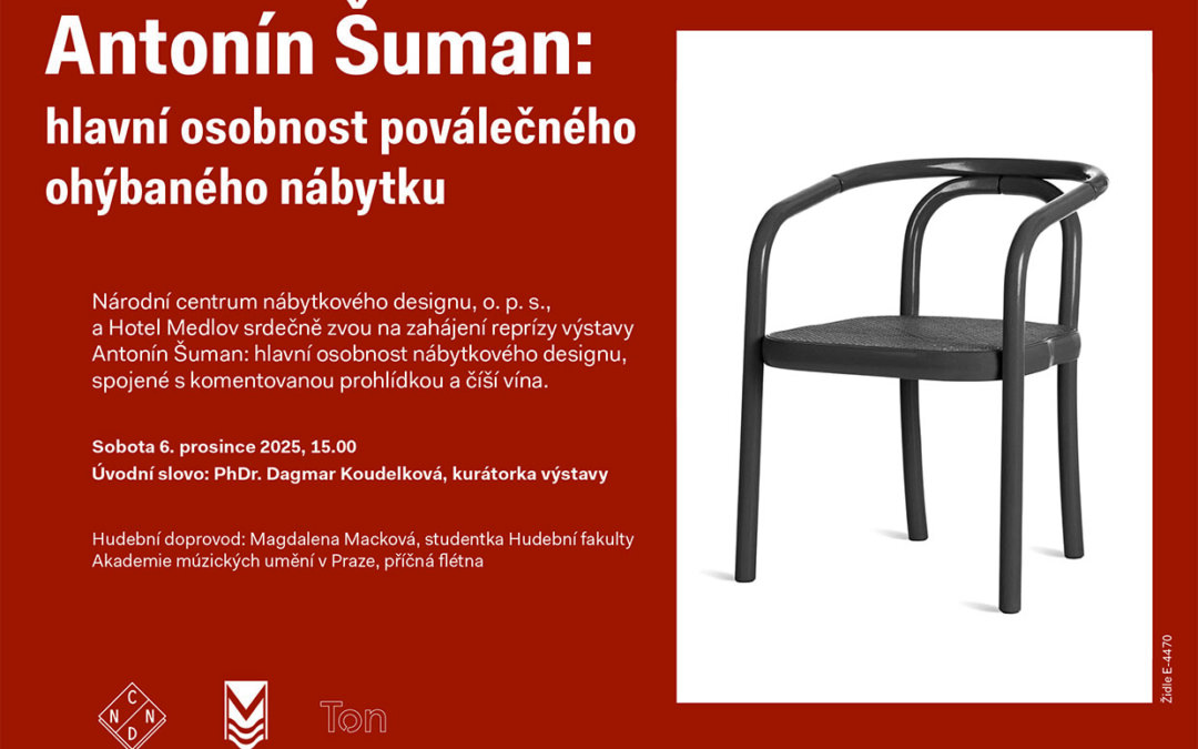 Srdečně Vás zveme na reprízovanou vernisáž výstavy Antonín Šuman: hlavní osobnost poválečného ohýbaného nábytku, které ve spolupráci s Národním centrem nábytkového designu, o. p. s. pořádá Hotel Medlov. V průběhu vernisáže se můžete těšit na komentovanou prohlídku a...